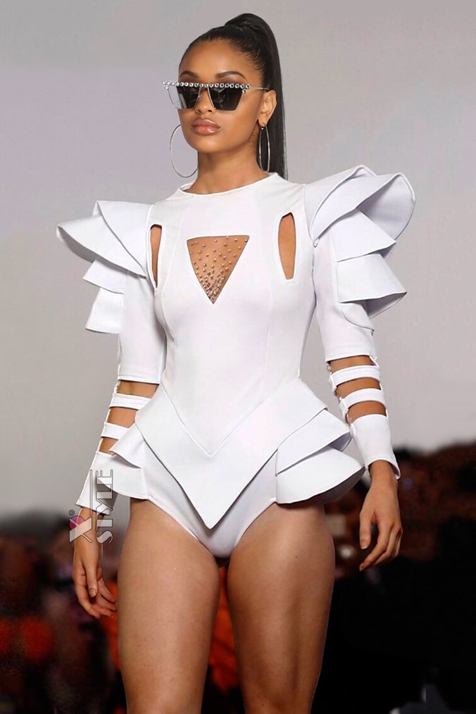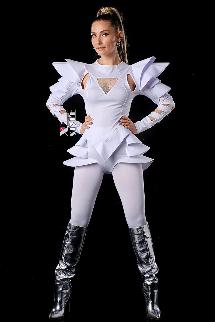 Add to Compare Futuristic White Bodysuit with Voluminous Details art. 129225 Brand: XSTYLE 5,860 UAH 4,980 UAH Beautiful white futuristic bodysuit with 3D volumetric details on the shoulders and hips. Made of dense elastic fabric, with zipper on the back. High-quality fabric Long sleeve with cutouts Hooks closure on the bottom V-neckline with glitter mesh and stones Volumetric 3-D details Keep their shape perfectly In a convenient package In Stock Sizes: XS-S S-M Qty: Add to Cart Add to Wish List 4,980 UAH Related Products 487 UAH 649 UAH 597 UAH DESCRIPTION Fabric: 95% Polyester, 5% Elastane. We recommend
