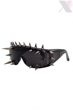 Women's Faux Leather Fingerless Gloves with Chains and Studs C1186