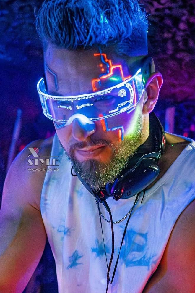 Прозрачные светодиодные очки с LED-подсветкой. Помогут создать яркий оригинальный образ для клубной вечеринки и фестиваля.