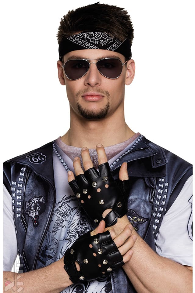 Мужские перчатки без пальцев с цепями C1185