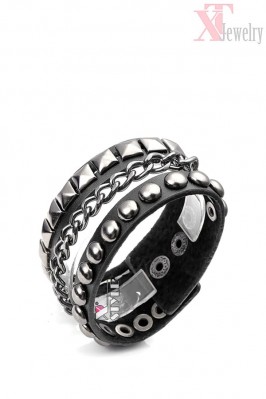 Кожаный браслет с шипами XJ186