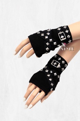 Женские кожаные перчатки без пальцев с цепями и клепками C1186
