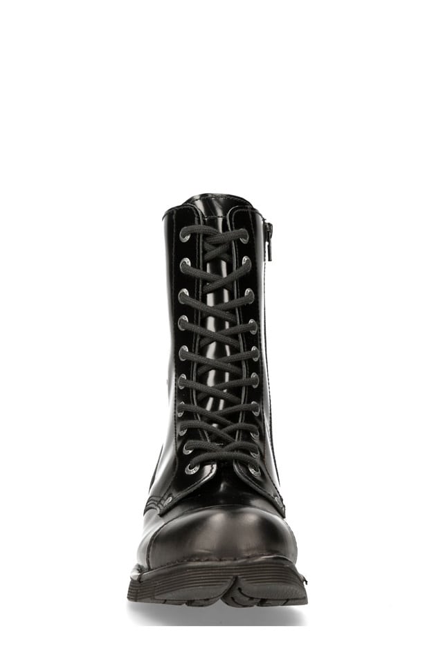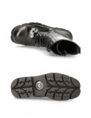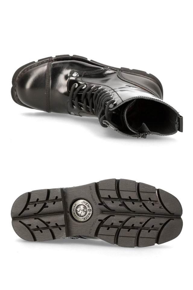 Взуття ТМ New Rock виготовляється тільки з натуральної шкіри, забарвлюється, сушиться та змащується вручну. Підошви з натурального каучуку стійкі до масел, мастила та бензину. Натуральний каучук легко прогинається й поглинає кроки, але повністю відновлює свою форму та товщину; набагато міцніший та довговічніший за синтетичні матеріали. Багатоточкова амортизація підошви: за рахунок правильного розподілу опор, поглинаючих удари, дає відчуття м'якості. Повітряні камери розподілені найкращим чином для отримання максимального комфорту.