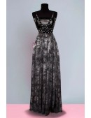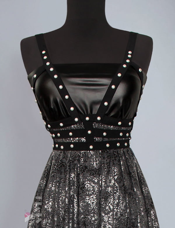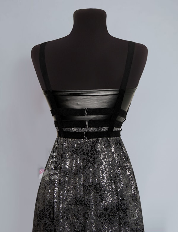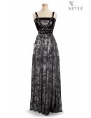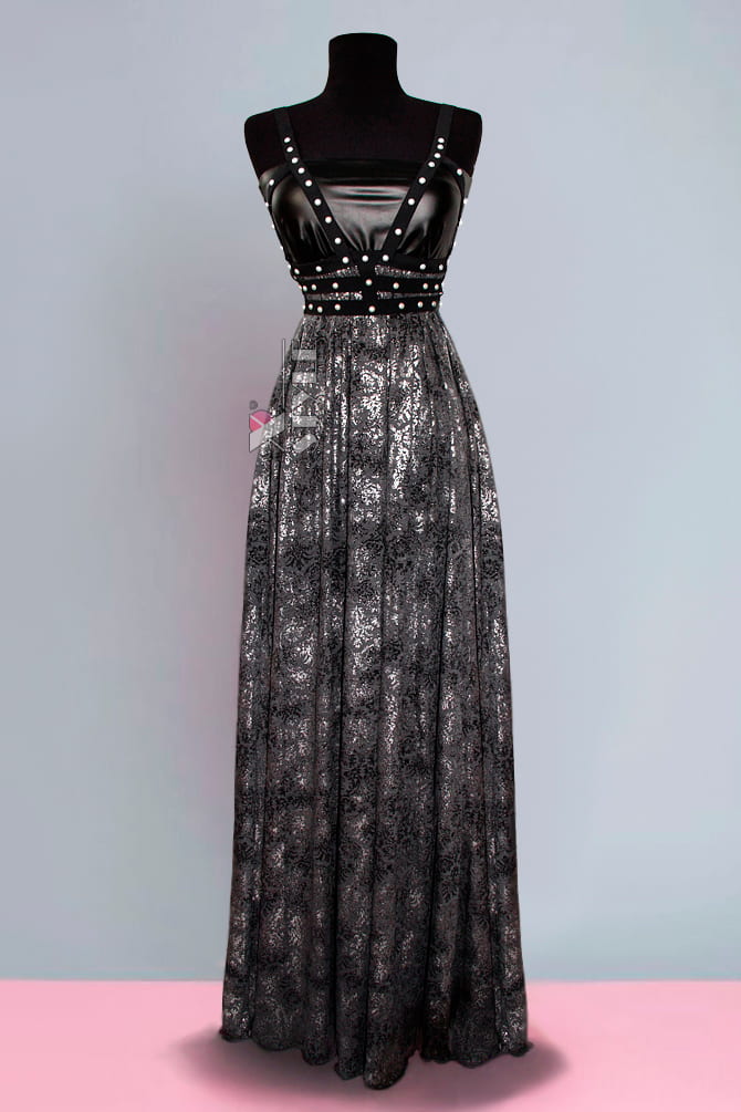 Довга вечірня сукня зі шкіряним верхом-бюстьє та довгою розкльошеною спідницею з квітковим візерунком, X-Style.