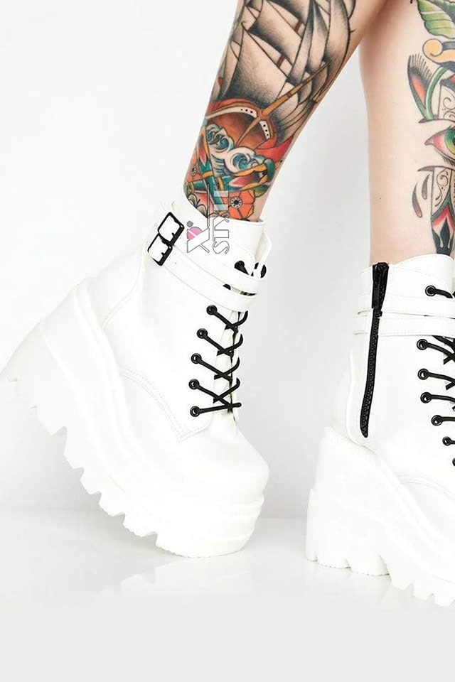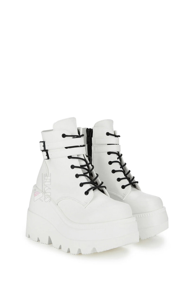Для вас — более 20 умопомрачительных моделей сапог и ботинок на платформе. К чему лежит душа? Шнуровки и пряжки, черепа и кресты, ботфорты и низкие сапожки... Мы не знаем, каков ваш образ, но точно знаем, что здесь вы подберете ту пару обуви, которая гармонично завершит его.