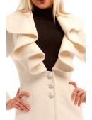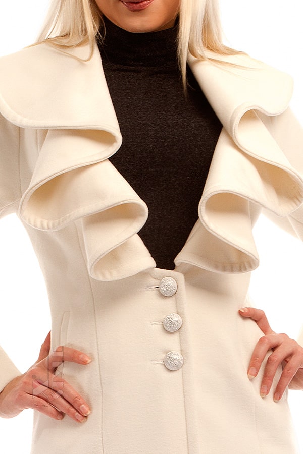 Элегантное женское демисезонное пальто с красивым декольте и ниспадающим шалевым воротником, X-Style. Изготовлено из кашемира молочного цвета, застежка на три пуговицы.