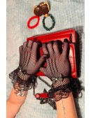 Женские кожаные перчатки без пальцев с цепями и клепками C1186