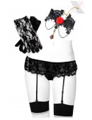 Костюм Круэлла (маска, парик, мундштук, перчатки, бусы)
