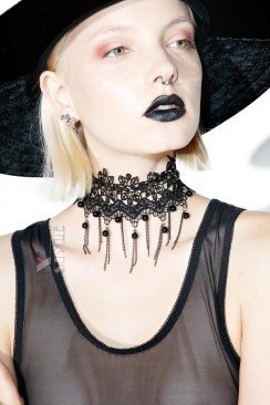 • чокеры, изготовленные из кожи, кружев, металла, бархата с застежкой на цепочке. У нас есть и необычные модели - в виде корсета, с загнутыми шипами, высокие кожаные, тату, ожерелья-чокеры и комплекты из двух-трех изделий.
