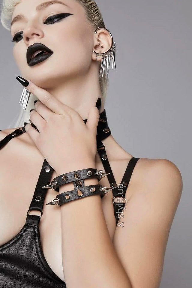 Кожаный браслет с шипами XJ186