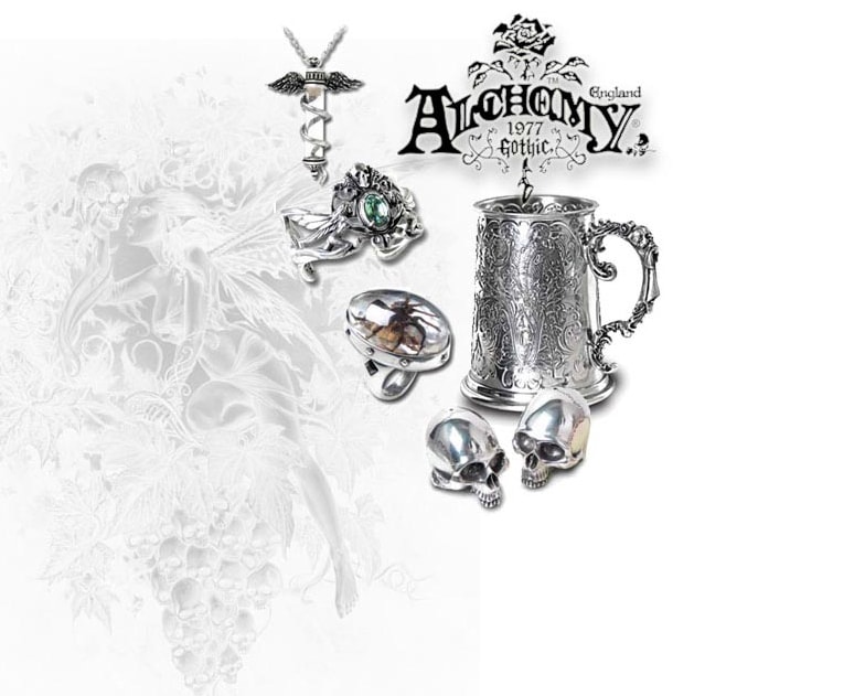 Вопрос: может ли в наше время кого-то удивить бижутерия? Ответ: может, если это Alchemy Gothic. Кулоны, серьги и кольца от Alchemy Gothic не сравнятся ни с чем. Очаровательные перстни с изящными кристаллами, в то же время усеянные устрашающими драконами и летучими мышами; серьги в виде кинжала, пронизывающего все ухо; кулоны и подвески с черепами и воронами.