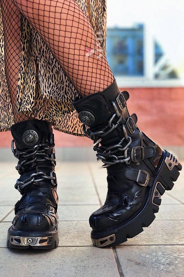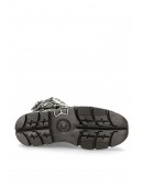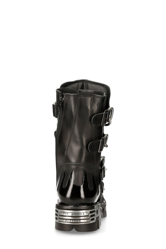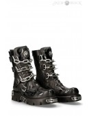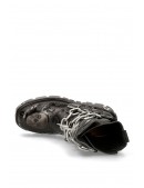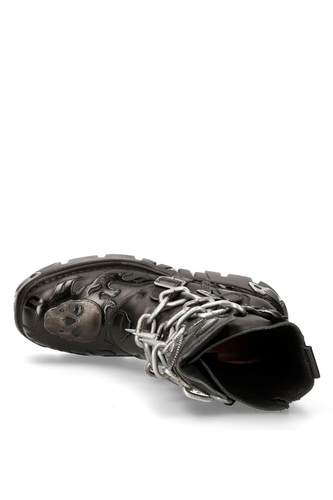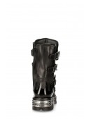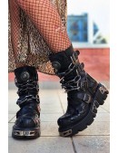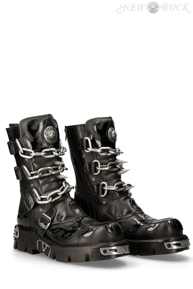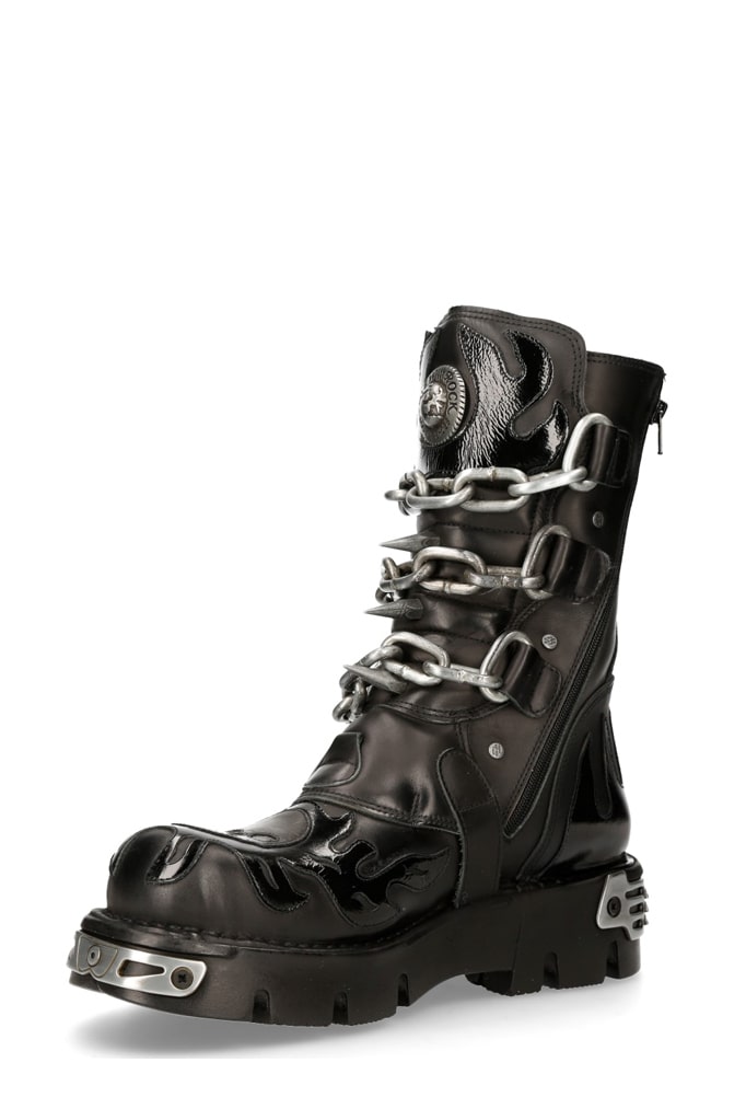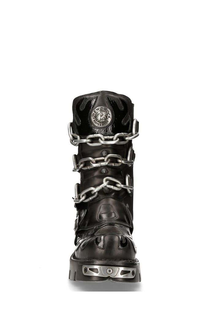 Черные ботинки из натуральной матовой и лаковой кожи с массивными цепями, New Rock.
