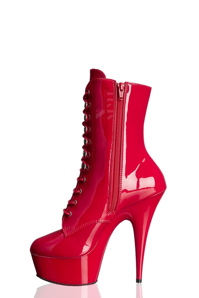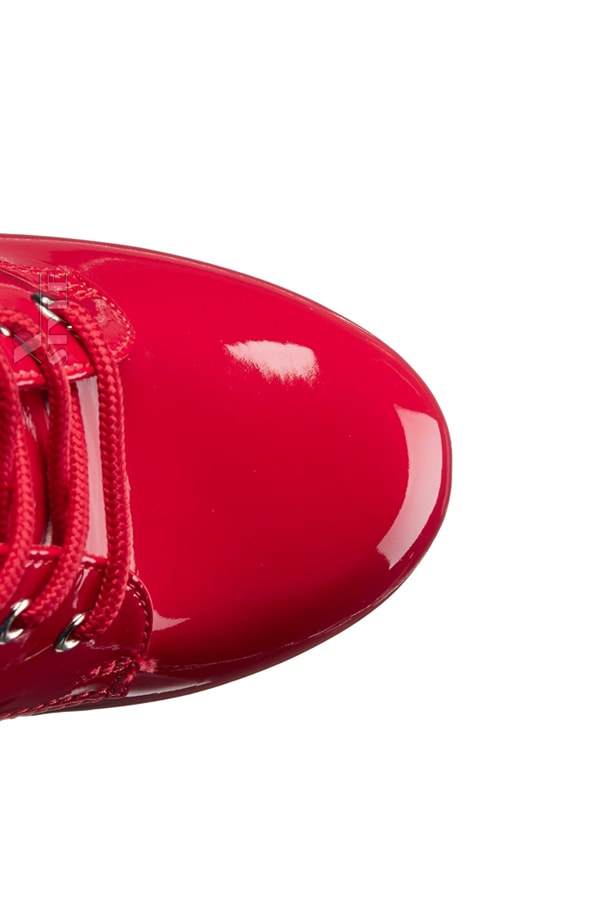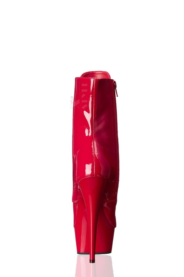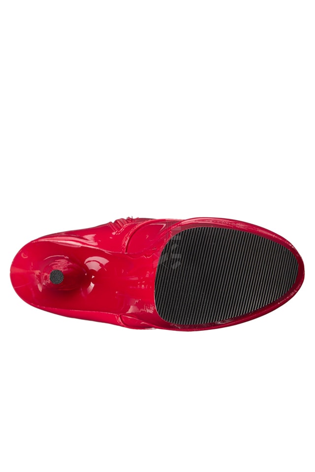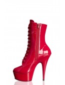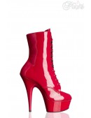 Красные лаковые ботильоны на высоком круглом каблуке и платформе, Pleaser.