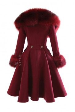 Зимнее шерстяное пальто с капюшоном и мехом X92