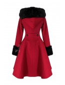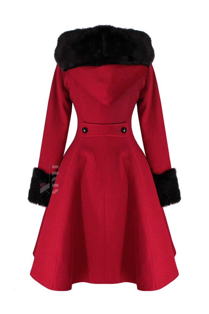 Винтажное зимнее пальто с капюшоном и мехом (80% шерсть) (115090)