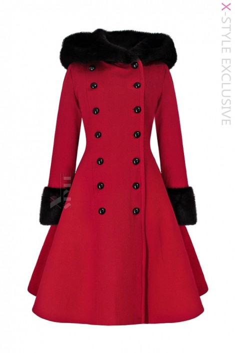 Винтажное двубортное зимнее пальто бордового цвета из шерстяного рубчика, XStyle. Пальто утеплено синтепоном, рассчитано на холодную зиму.