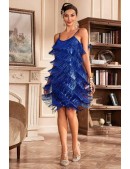 Винтажное платье с коротким рукавом, пайетками и бахромой