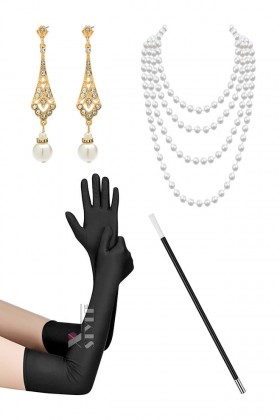 Набор аксессуаров в стиле Ретро (перчатки, бусы, серьги)