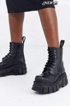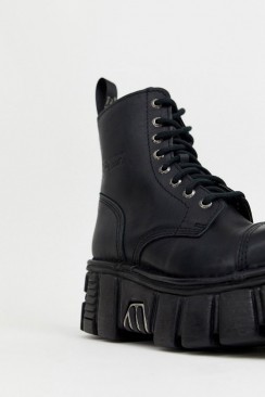 Черные кожаные сапоги со шнуровкой и винтами в платформе