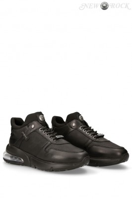 Черные кожаные кроссовки на высокой платформе TANK-106