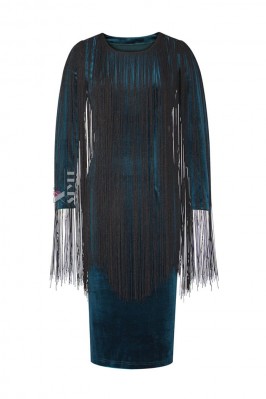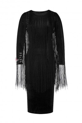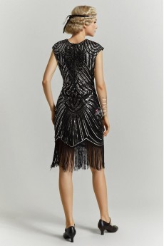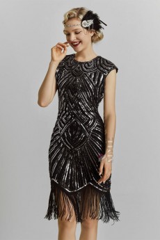 Винтажное платье с коротким рукавом, пайетками и бахромой