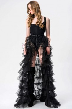 Как правило, для пошива используются такие материалы, как фатин, шифон или полупрозрачная сетка. Длина юбки может быть разной, начиная от мини и, заканчивая макси в пол. Также красиво смотрится укороченная юбка с легким шлейфом.