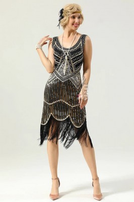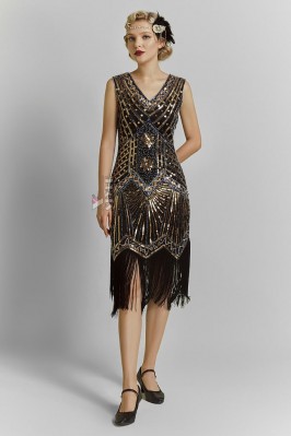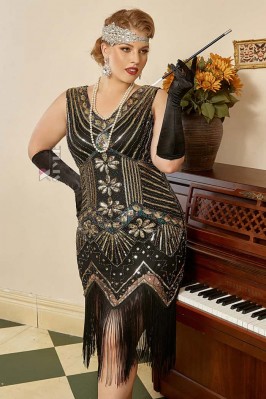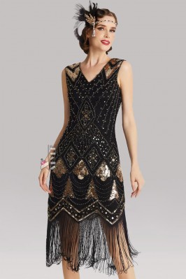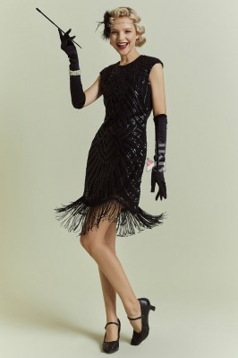 Винтажное платье с коротким рукавом, пайетками и бахромой