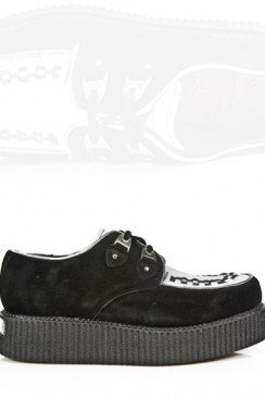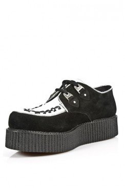 Некоторые криперы выглядят очень смело и даже вызывающе: платформа, достигающая 10-12 сантиметров, замшевая отделка и самые неожиданные декоративные элементы, то есть более «андерграундные» модели. Такие криперы сами по себе являются ярким акцентом в образе, поэтому не стоит навешивать на себя массивные аксессуары. Сочетайте их с соответствующей стилю одеждой: большими футболками и кофтами в стиле панк (размеры oversized), пальто и плащами, косухами.
