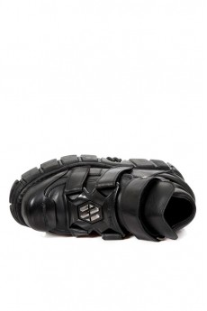 Черные кожаные кроссовки на высокой платформе TANK-106