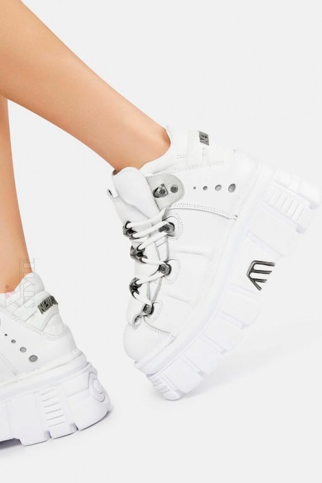 Белые кроссовки на массивной подошве со шнуровкой от New Rock.