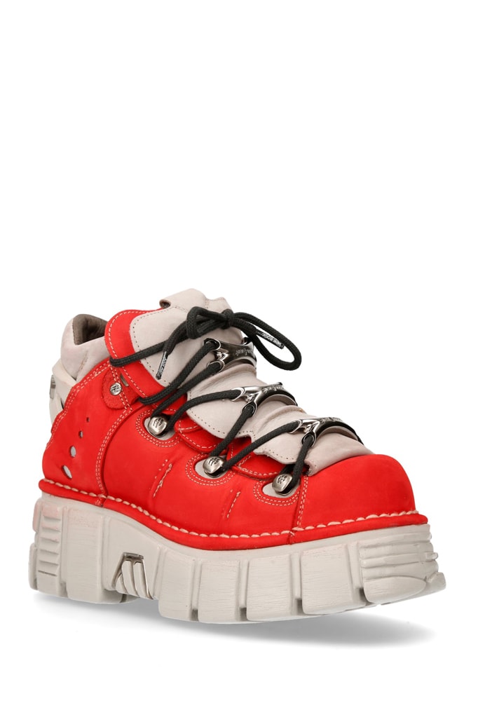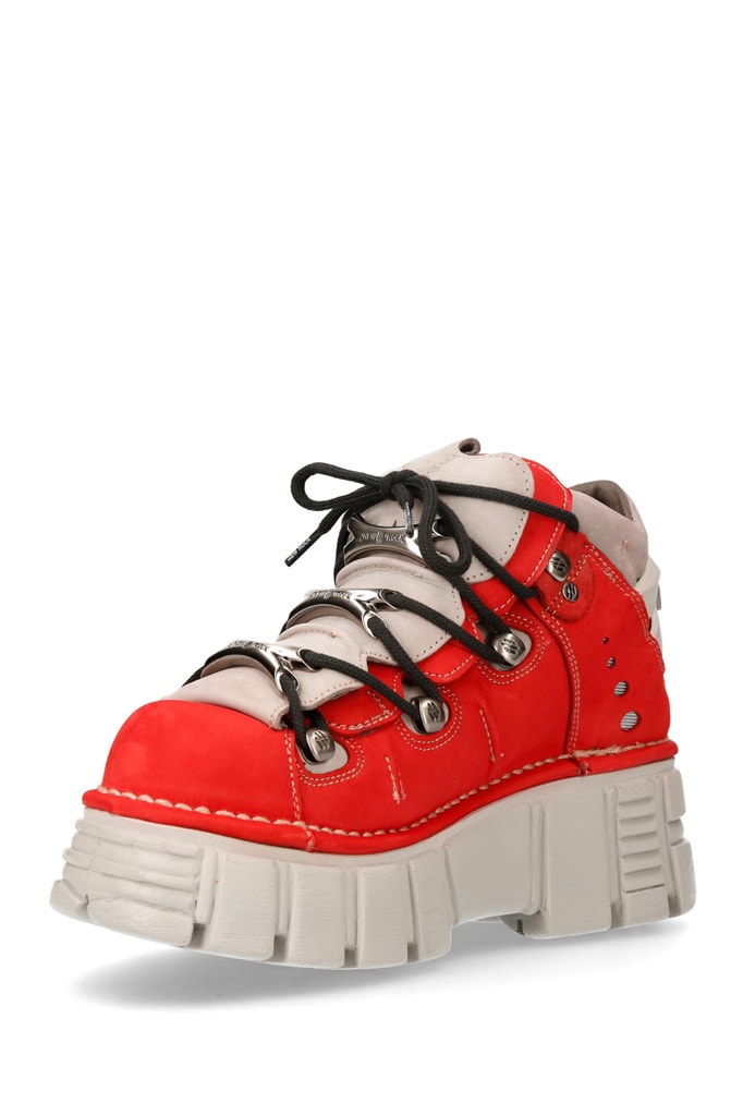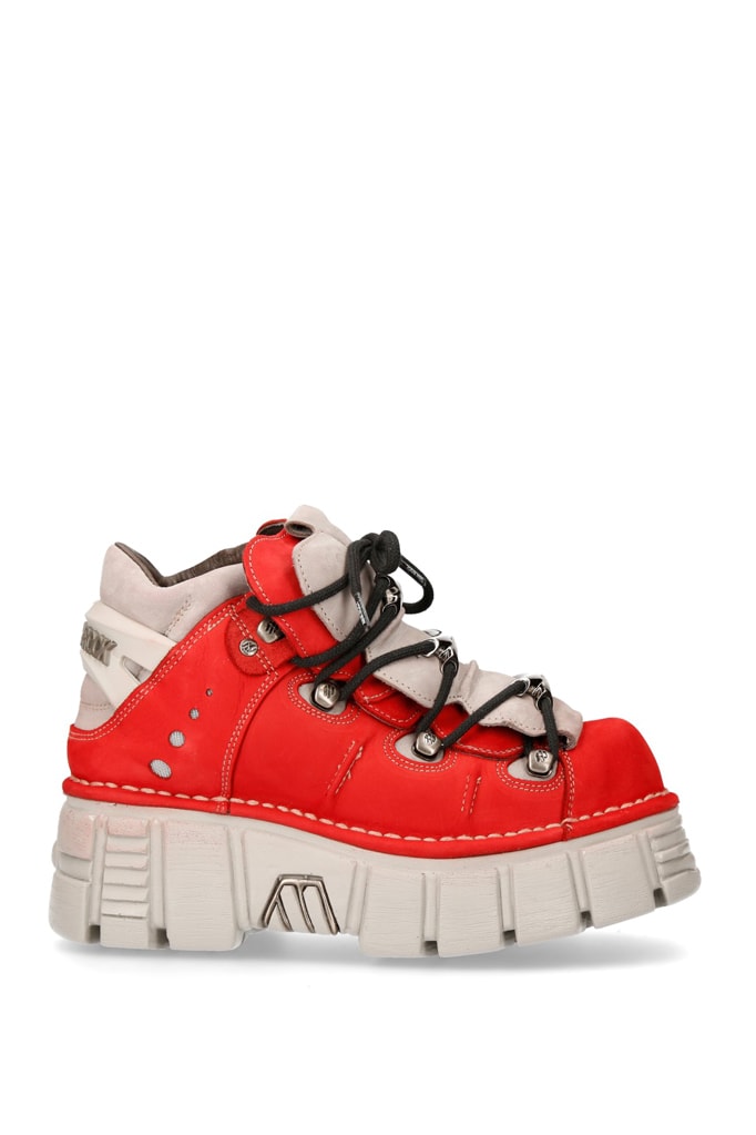 Красные кроссовки из нубука на массивной подошве, New Rock.