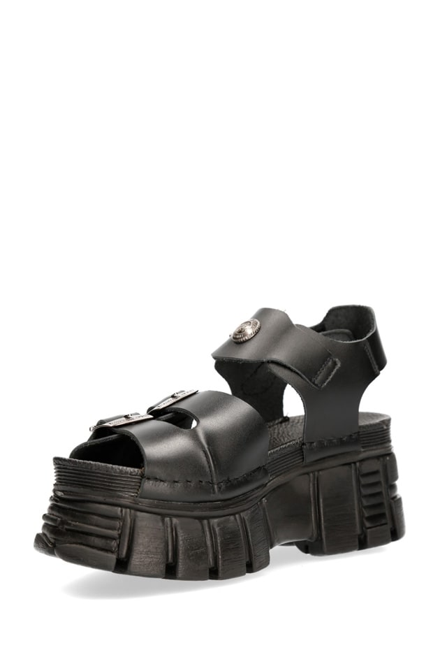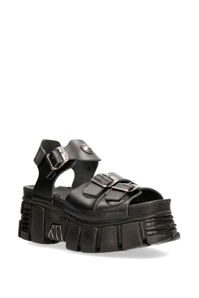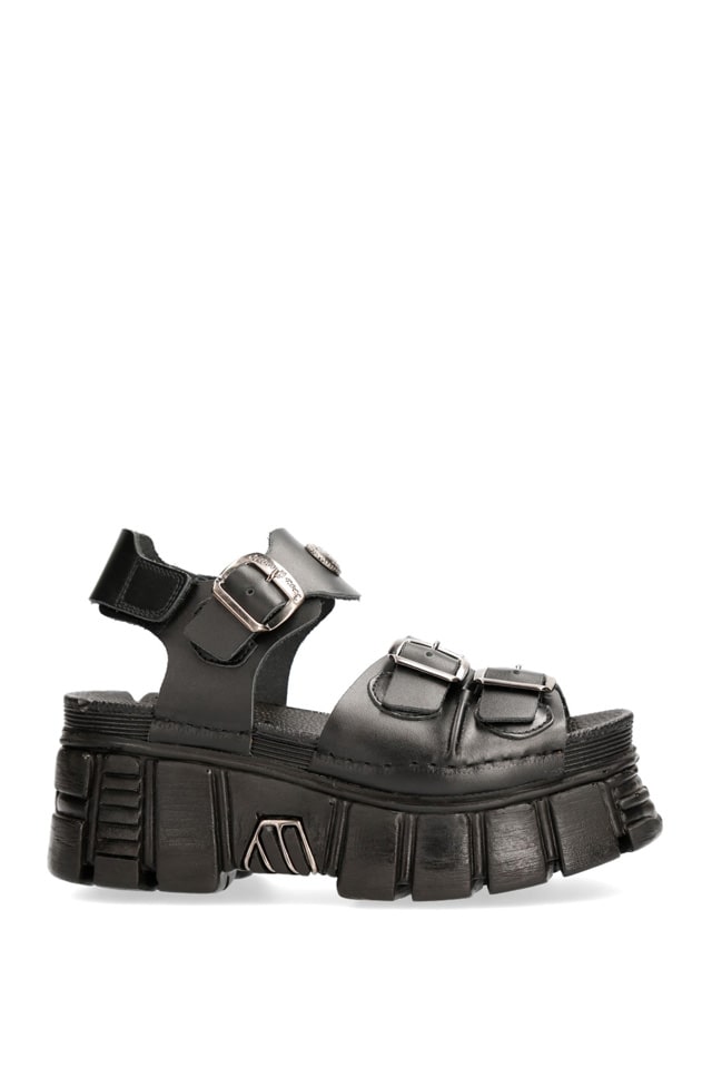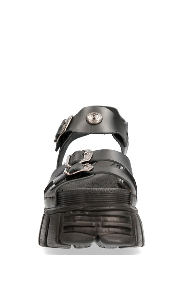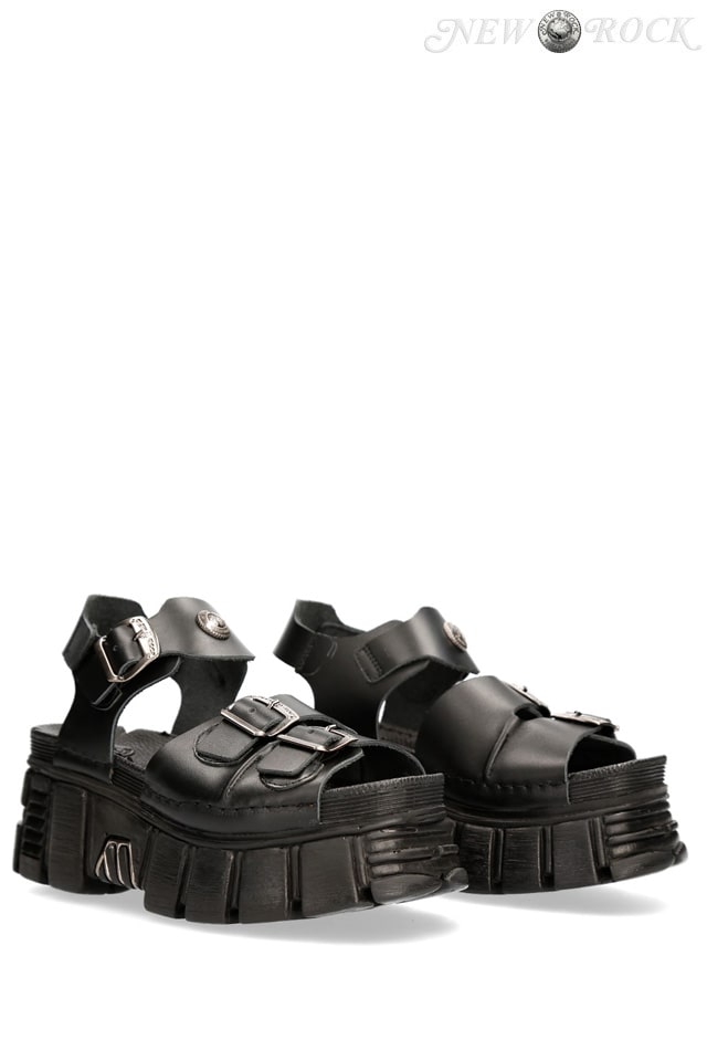 Черные босоножки на платформе с ремешками и пряжками, New Rock.
