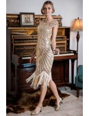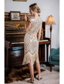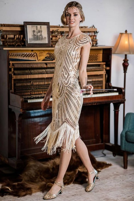 Винтажное платье с коротким рукавом, пайетками и бахромой