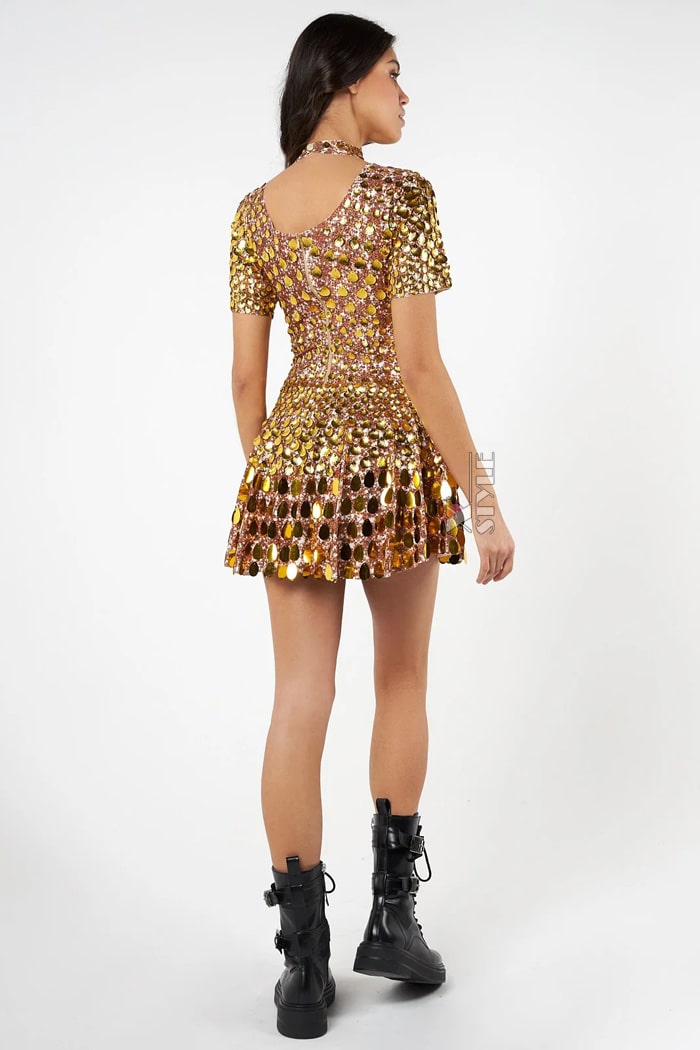 Зеркальное футуристичное боди с юбочкой M2502