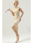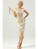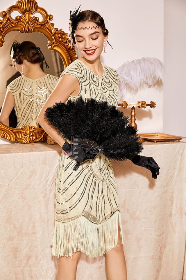 Винтажное платье с коротким рукавом, пайетками и бахромой