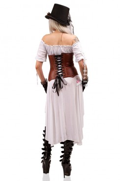 Многовековые модные тенденции не переставали меняться, как капризная лондонская погода, но эта деталь гардероба продолжала переживать революции и модернизации. Изначально под ним подразумевались железные либо деревянные вставки в ткани, которые должны держаться на бретельках. Позднее, он стал полнокройным, изготовленным из плотных тканей и без бретелек.