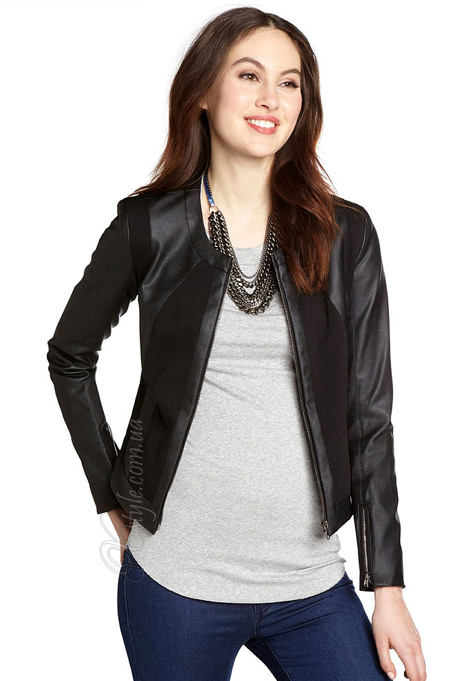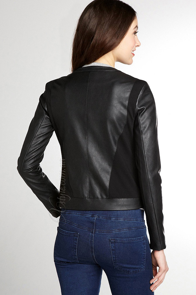 Женская кожаная куртка с кашемировыми вставками (112110)