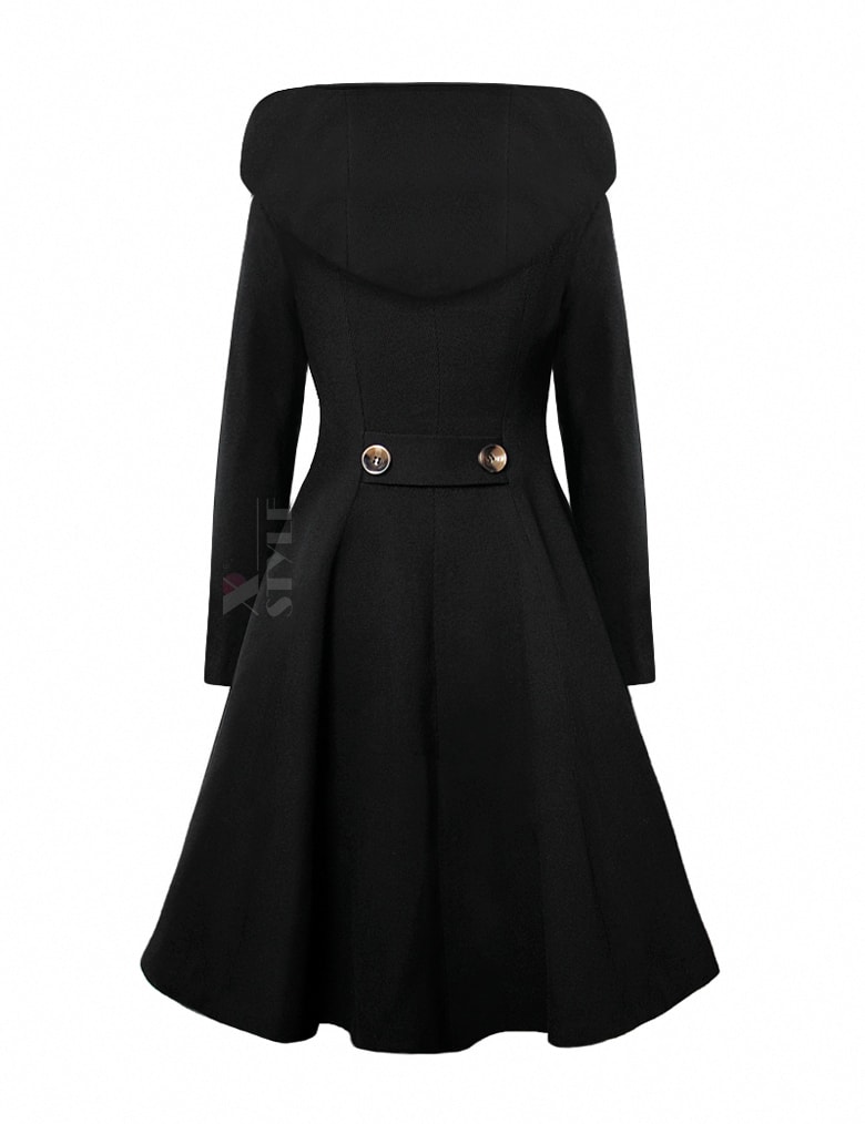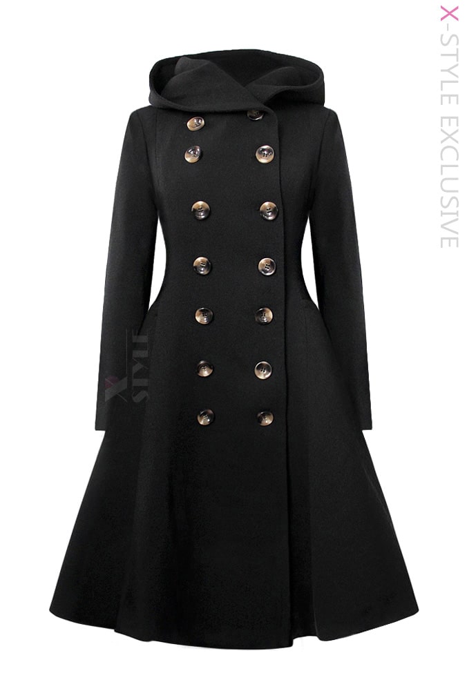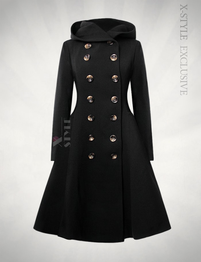 Двубортное зимнее пальто с капюшоном от X-Style. Изготовлено из шерстяной пальтовой ткани, утеплено синтепоном.